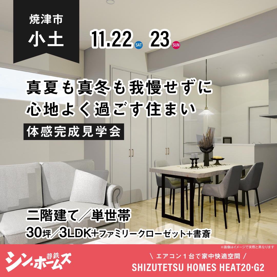 (1)完全予約制見学会 ・ 11月15日(土)10:00~16:00 ・ 11月16日(日)10:00~16:00 (2)予約不要 見学会 ・ 11月22日(土)10:00~16:00 ・ 11月23日(日)10:00~16:00 |
