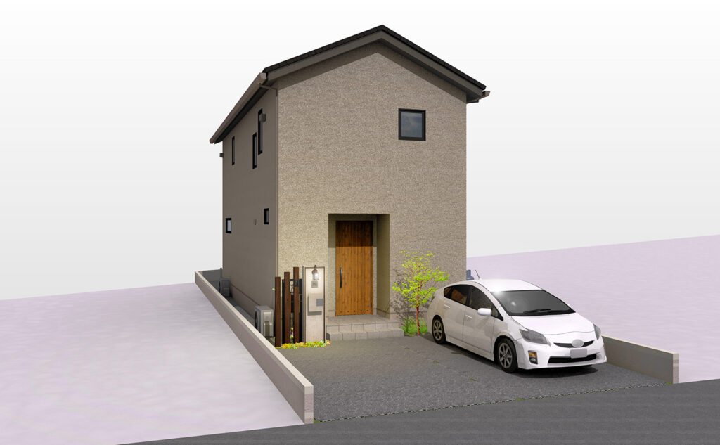 - 南北2方向道路の利点を生かし、南北駐車場と南面の庭をプライベートスペースで有効活用できる